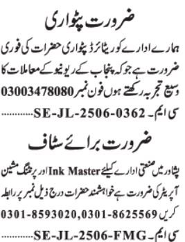 Are you looking for full-time staff jobs in Lahore? A private company urgently requires skilled staff for Ink Master and technical machine operation roles. Candidates with Matric, Intermediate, or Bachelor education are encouraged to apply for this opportunity. Latest job in Sialkot.