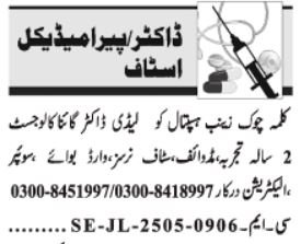 Are you a female doctor, nurse, or paramedical staff looking for a full-time job in Lahore? A clinic near Chah Miran is hiring qualified women for various medical positions. This is a great opportunity for candidates with relevant education and experience. Jobs 2025 In Lahore.
